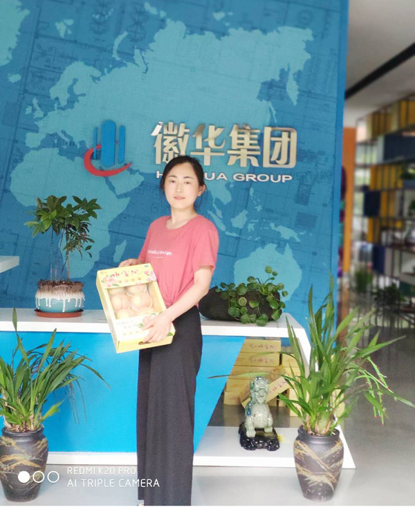大家纷纷领取水蜜桃礼盒,表示非常感谢公司带给大家的福利,也希望果农有好的销路,希望更多的人可以吃到美味可口的阳山水蜜桃。